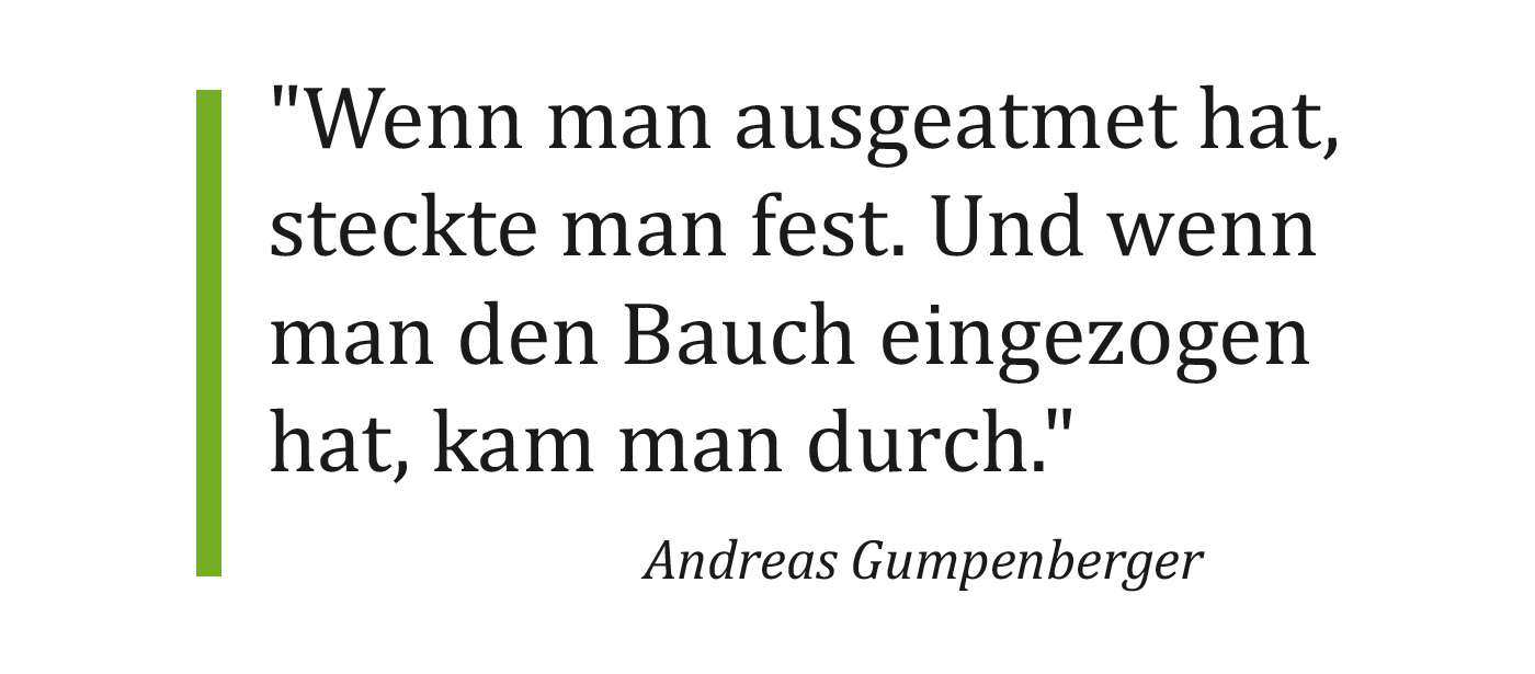 A.G.: Wir hatten einen Höhlenplan, ja. Aber es gab überraschend enge Stellen. Wenn man ausgeatmet hat, steckte man fest. Und wenn man den Bauch eingezogen hat, kam man durch. Da bekommst du dann schon auf einmal Respekt. Das einzige Gute dabei war, dass wir durch unseren Höhlenplan eigentlich immer wussten: Wir sind auf dem richtigen Weg. Sonst hätte es sich schlimmer angefühlt. Wären wir uns nicht sicher gewesen, dass die Route stimmt, dann hätte sogar ich Platzangst gekriegt.