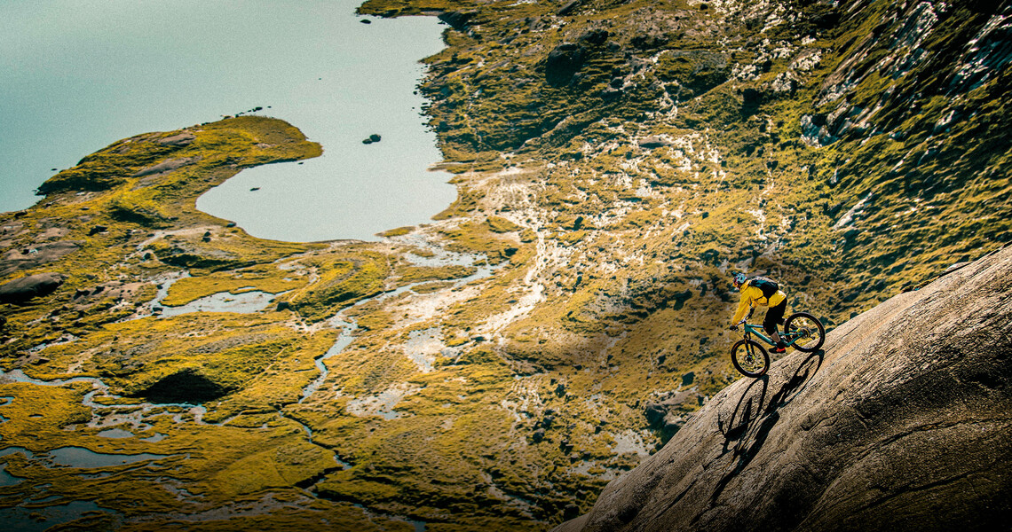 For a CO-neutral adrenaline kick, three BASE jumpers Jessica Maviano, Val Sobol, and Felicia Sturgeon ride their bikes to Castle Valley, Utah.